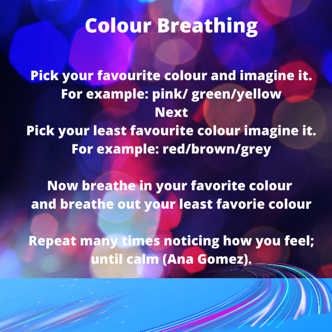 Then breathe out all the negativity in your body using your least favourite colour or texture.